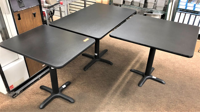 BRAND NEW Tables with Bases (Brown or Black Tops) 24" x 30" - $209 48" x 30" - $269 36" x 36" - $269